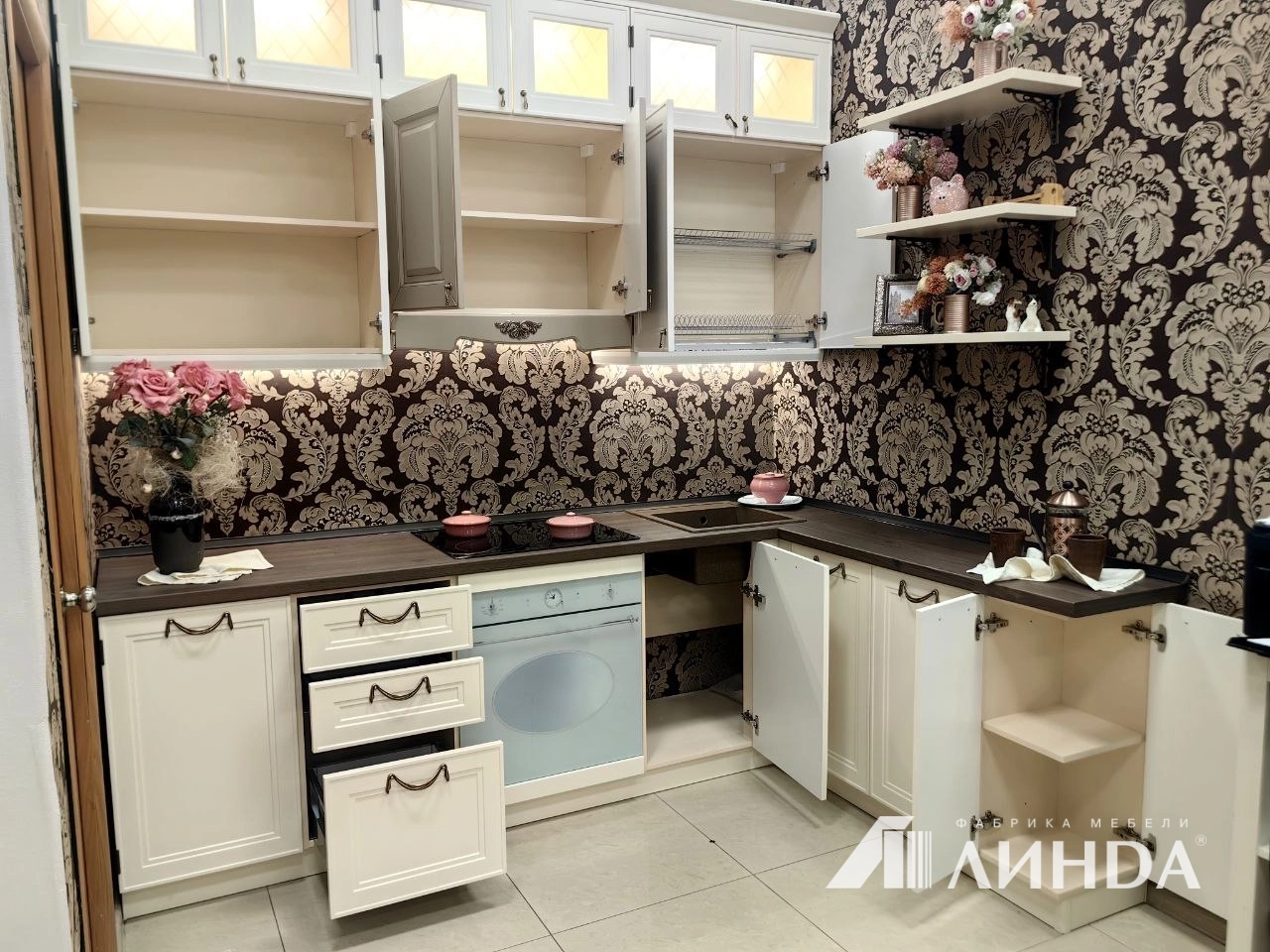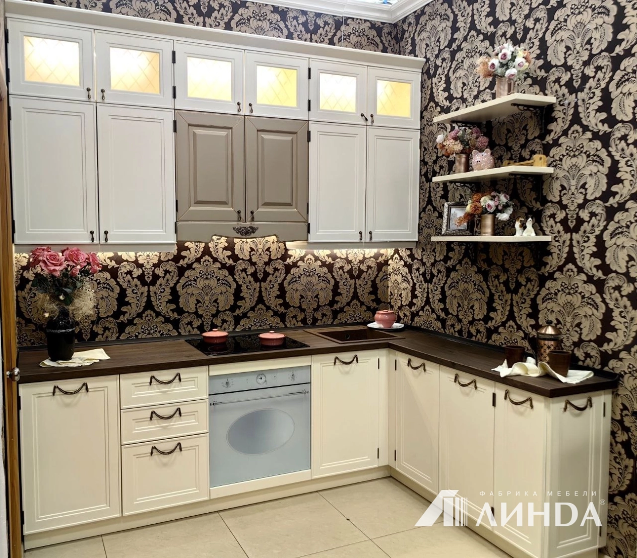 Длина 2400 мм * 1800 мм. Высота может быть в диапазоне 2500 мм до 2650 мм. Образец в идеальном состоянии, вся фурнитура Hettich ( Германия) с доводчиками. Столешница пластик hpl , производство Дюропал (Германия) фасады МДФ 18 мм, в пвх Ваниль. Центральный верхний модуль, под встроенную вытяжку, в ПВХ Карамель с золотой патиной. Демонтаж, упаковка и бережная доставка по Уфе бесплатно. Модем также доставить до любой траснспортной компании и отправить в любой город РФ. Дополнительные фото, видео, вопросы по телефону +79378332383 Анна