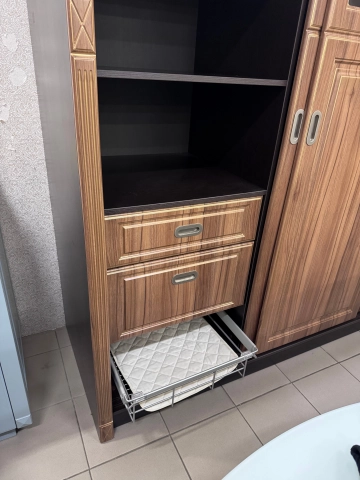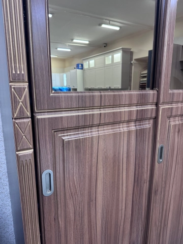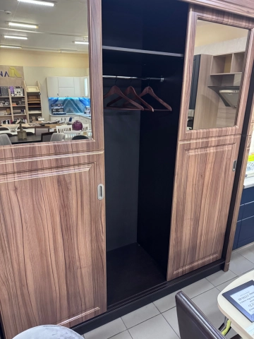 Фасады МДФ с фрезеровкой, «Орех натуральный» с патиной золото, зеркало бронза, корпус ЛДСП Венге.